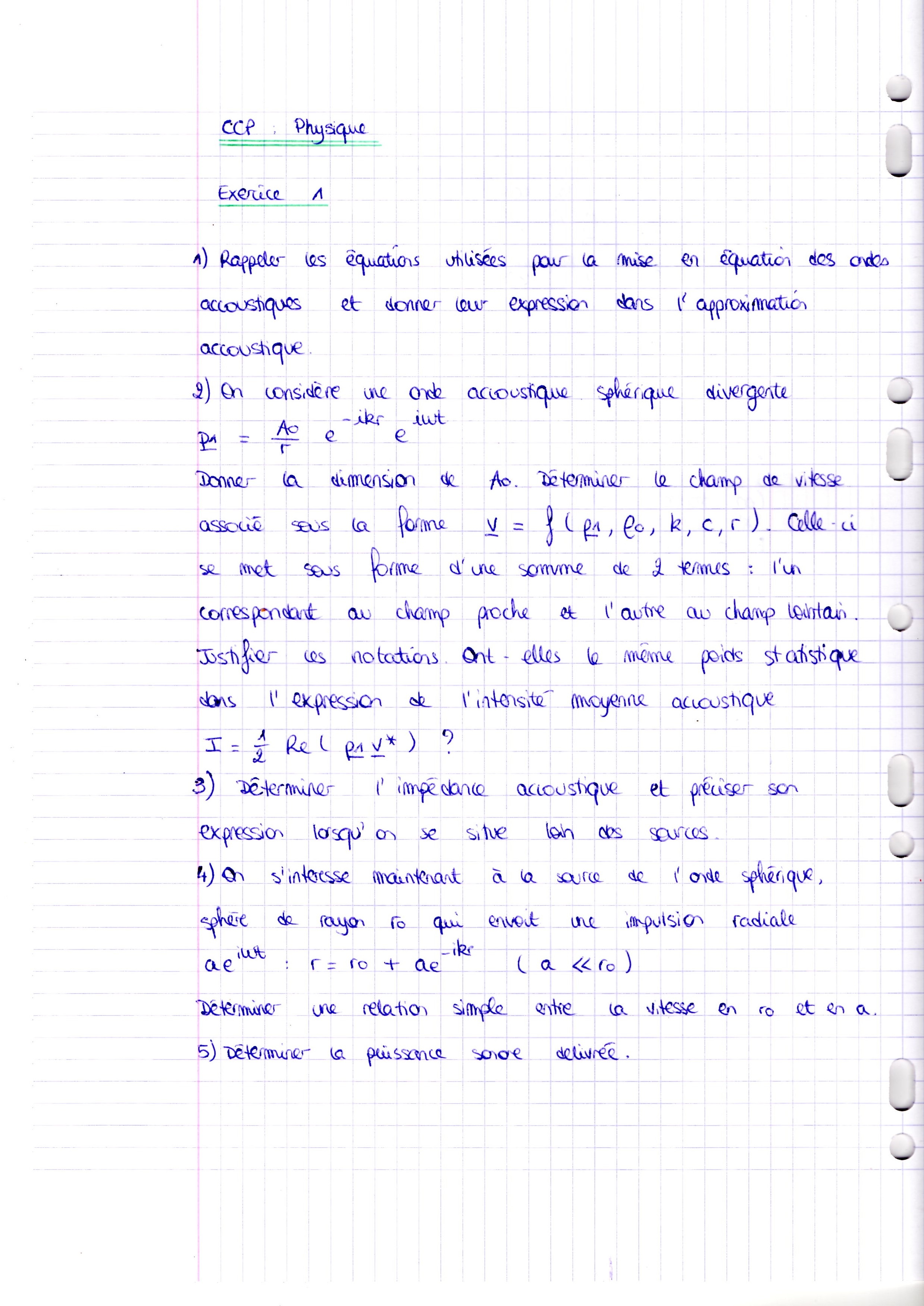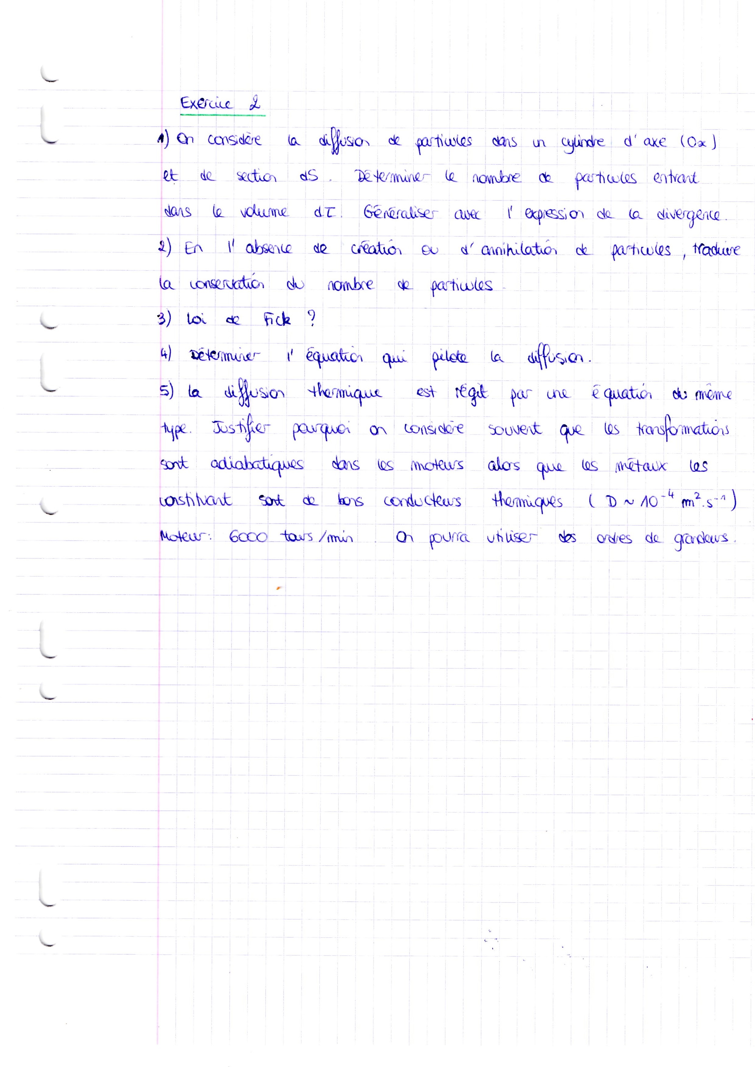 Mots-clés relatifs au contenu de l'épreuve : Diffusion de particules - Diffusion thermique - Moteur - Ondes sonores
