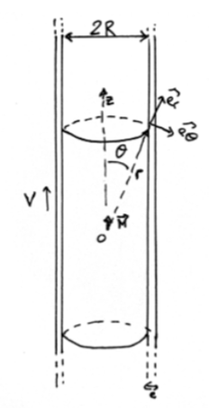 Un cylindre de métal d’axe vertical, de longueur L, de rayon R et d’épaisseur e avec L >> R >> e peut se déplacer librement selon son axe. Il a une masse m et subit également l’action de son poids. La conductivité du métal du cylindre est s. On place un dipôle magnétique au cœur de ce cylindre. Le dipôle est fixe et son moment est orienté verticalement (