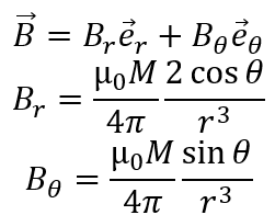 On cherche à déterminer les équations du mouvement du cylindre et à les résoudre. Le champ magnétique créé par un dipôle magnétique est en coordonnées sphériques :