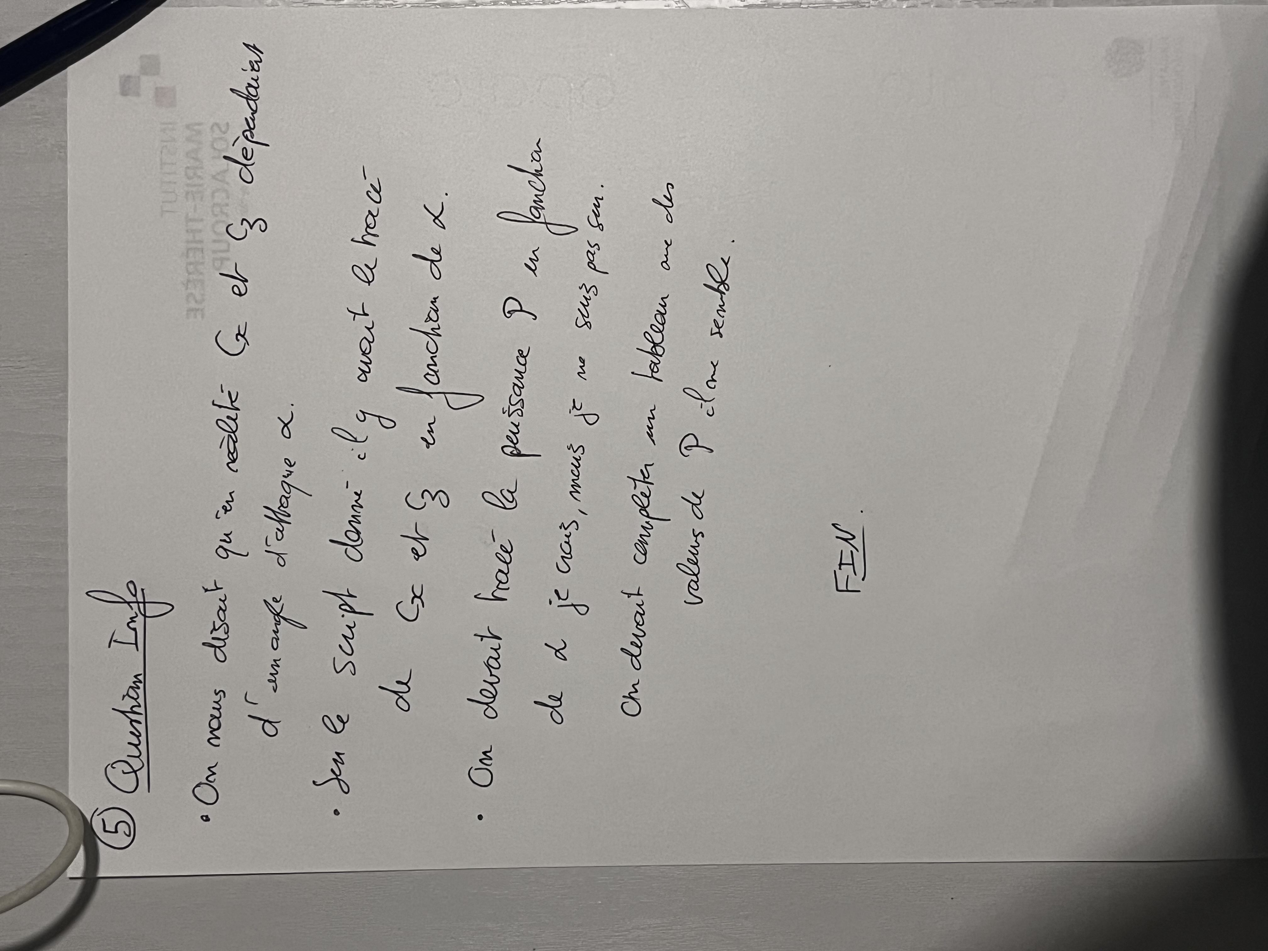 Indication(s) fournie(s) par l'examinateur pendant l'épreuve